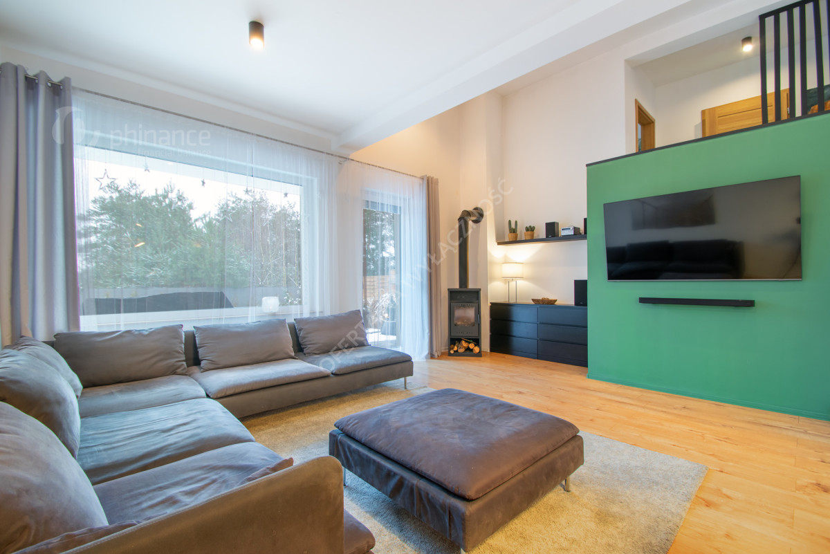 Dom wyróżnia się funkcjonalnym rozkładem pomieszczeń, który zapewnia komfort zarówno rodzinie, jak i osobom pracującym zdalnie. Wnętrza są jasne i przytulne, a układ daje dużą elastyczność aranżacyjną.