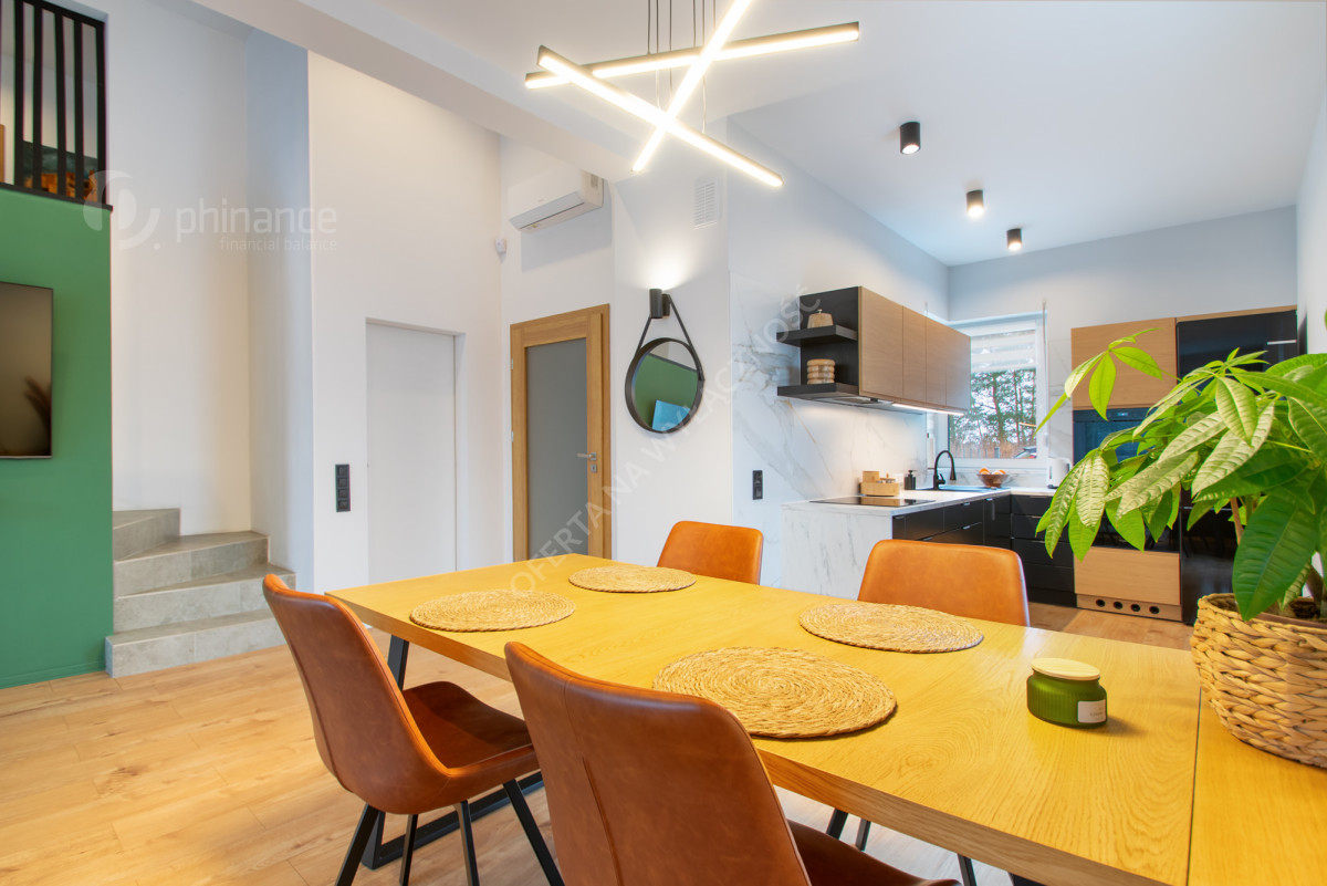 - wykończenie: w nowoczesnym stylu, podłoga: parkiet w salonie i kuchni, płytki w przedsionku oraz na schodach,