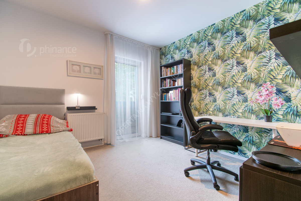 Do dyspozycji jest taras i ogród, które dają świetne warunki do odpoczynku, spędzania czasu z rodziną czy spotkań z przyjaciółmi. Dodatkowym plusem jest pomieszczenie gospodarcze z wejściem od ogrodu, które ułatwia codzienną organizację (narzędzia, rowery, sprzęt sezonowy).