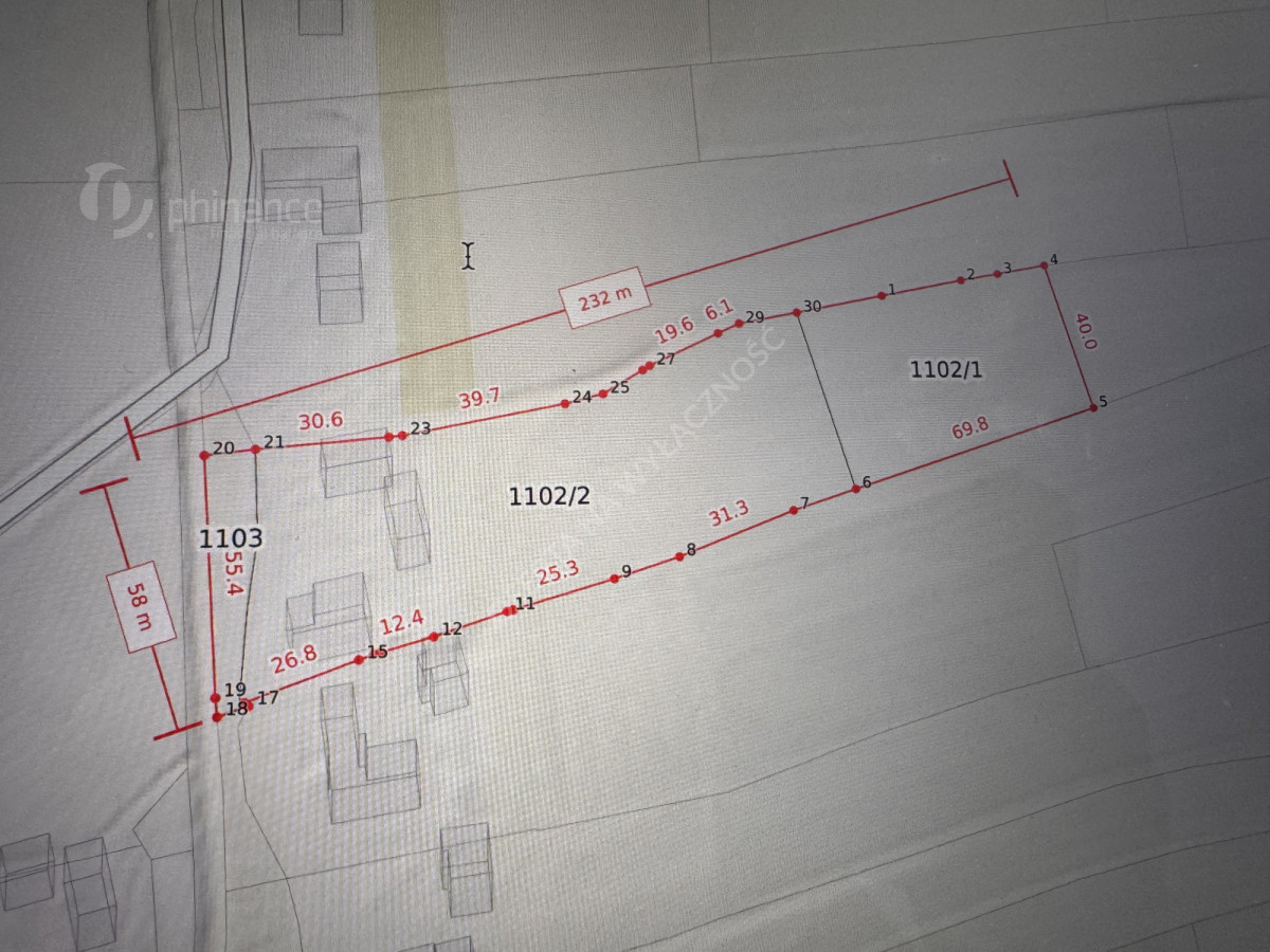 Nieruchomość składa się z trzech działek o numerach ewidencyjnych 1103, 1102/1 oraz 1102/2. Łączna powierzchnia gruntu wynosi 1,06 ha, co daje szerokie możliwości zagospodarowania terenu - zarówno pod przydomowy ogród, sad, jak i prowadzenie niewielkiego gospodarstwa. Dojazd do posesji odbywa się drogą utwardzoną, bezpośrednio na teren nieruchomości. Na działce znajduje się również budynek gospodarczy, który może pełnić funkcję magazynową czy miejsce do hodowli zwierząt.