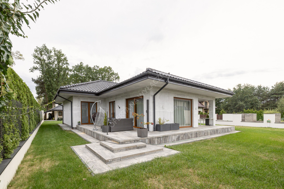 Przedstawiamy komfortowy, parterowy dom o powierzchni całkowitej 207,96 (163,66 m2 użytkowej) posadowiony na działce o powierzchni 1478 m2, w cichej i spokojnej części Góry Kalwarii (Marianki).