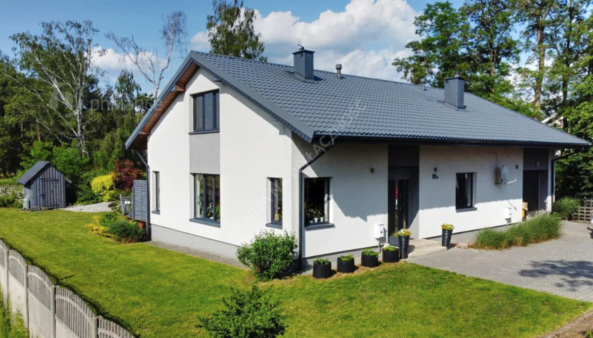 Dom łączy w sobie ciepło domowego ogniska, nowoczesną funkcjonalność i spokój natury - idealny wybór dla rodzin i osób pracujących zdalnie.