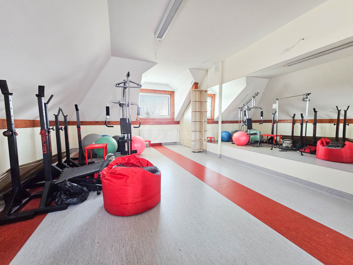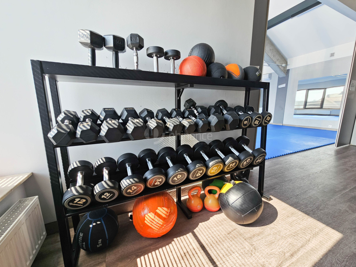 W budynku mieści się dobrze prosperująca siłownia z kompletnym zapleczem - recepcją, szatniami, łazienkami oraz nowoczesnym sprzętem fitness. Obiekt oferuje również przestrzenie do prowadzenia zajęć grupowych, treningów personalnych, a także prywatnych gabinetów.