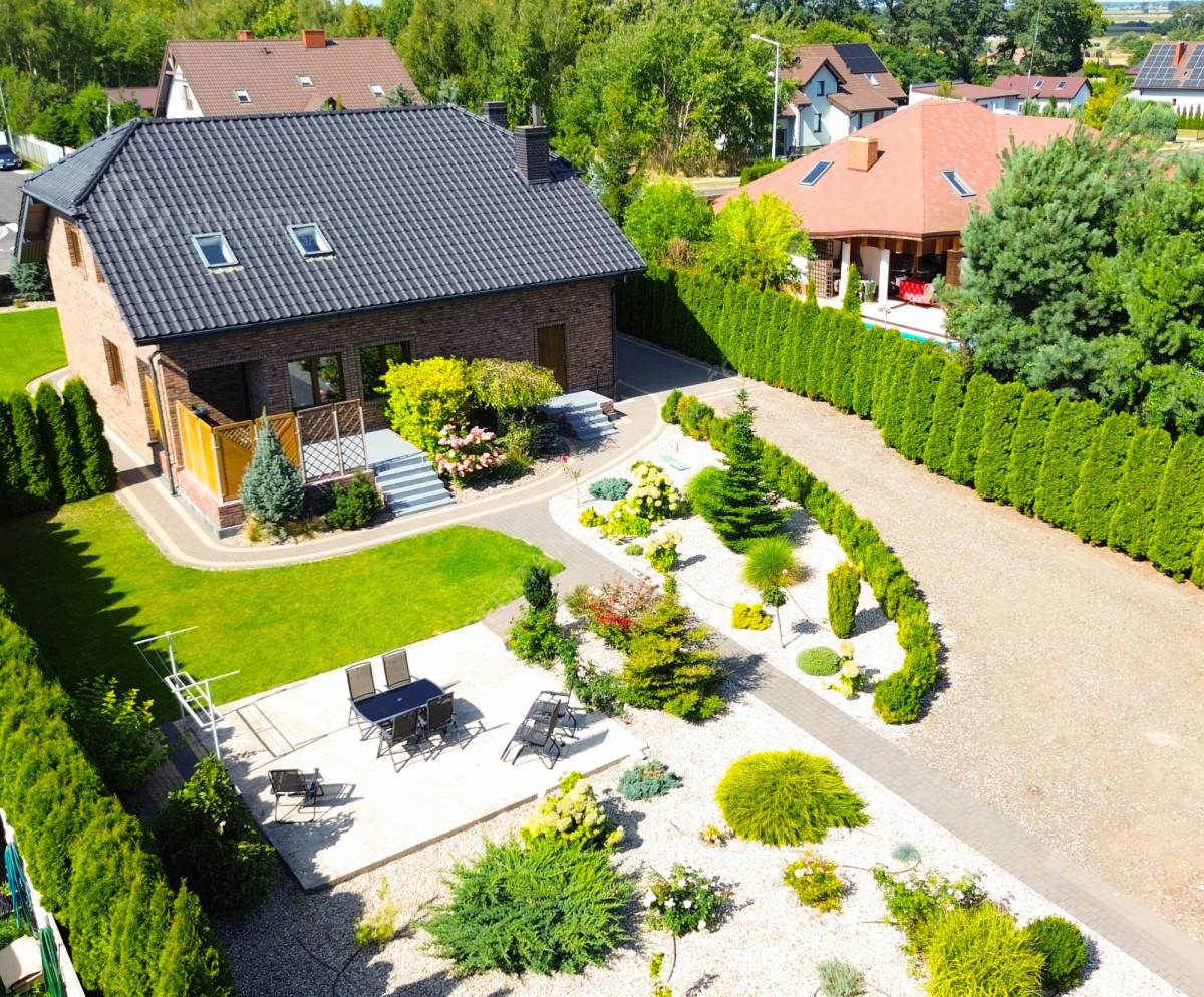 - dom wybudowany z klinkieru, podjazd i otoczenie wyłożone kostką