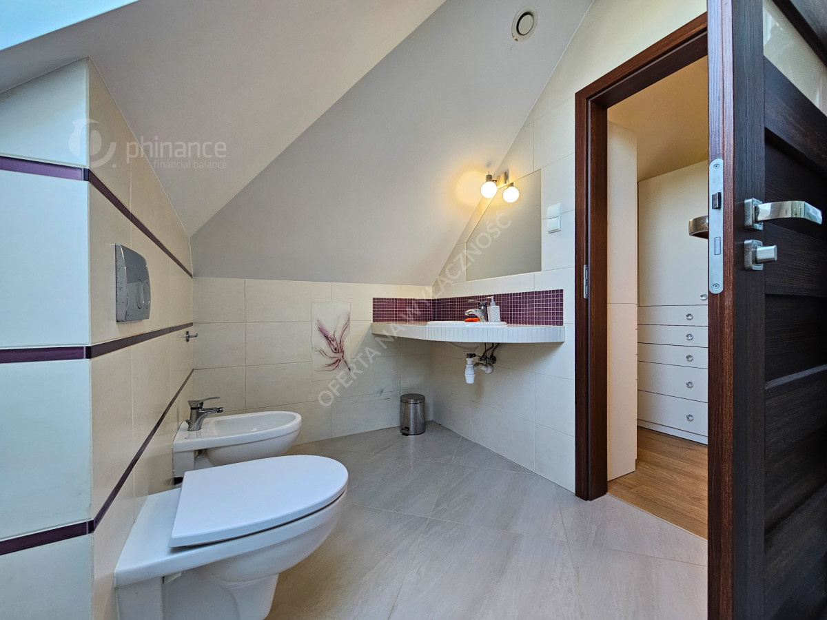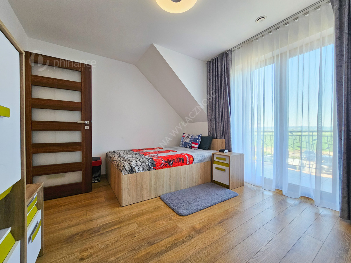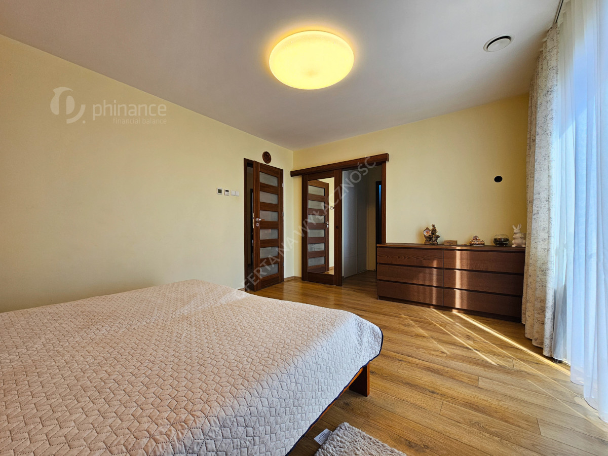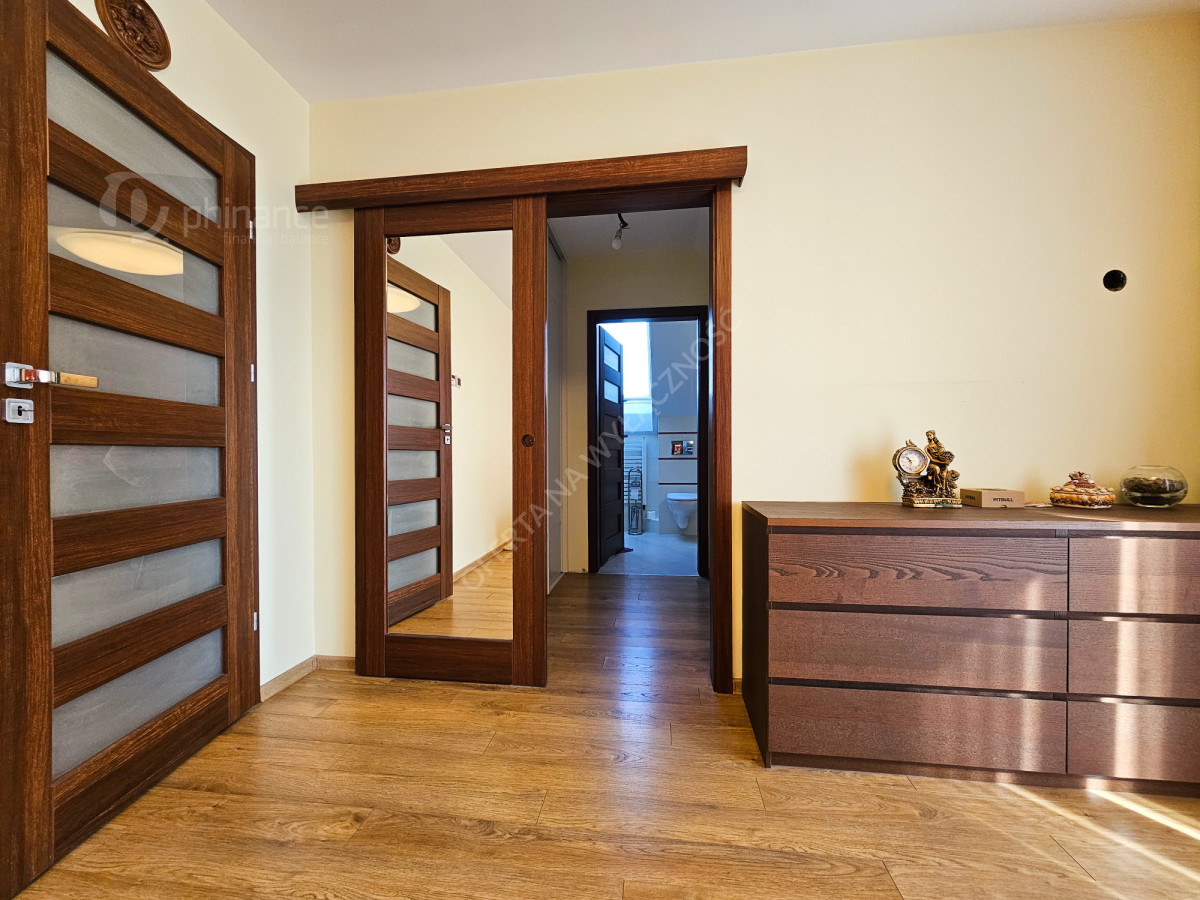 - trzy komfortowe sypialnie z balkonami, w tym główna sypialnia z garderobą i prywatną łazienką z prysznicem