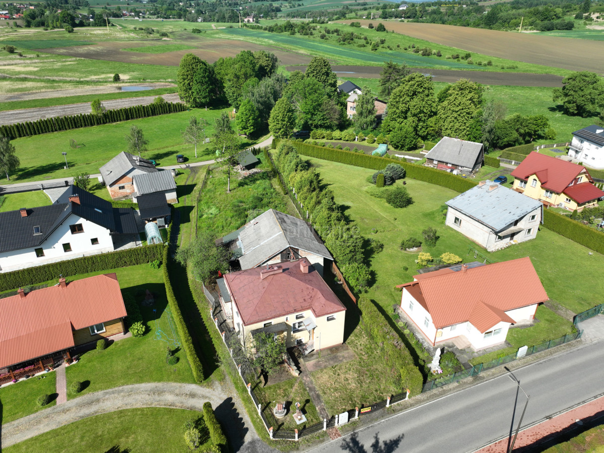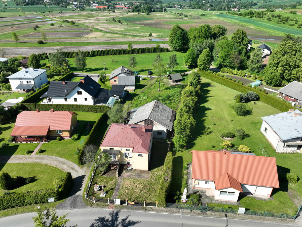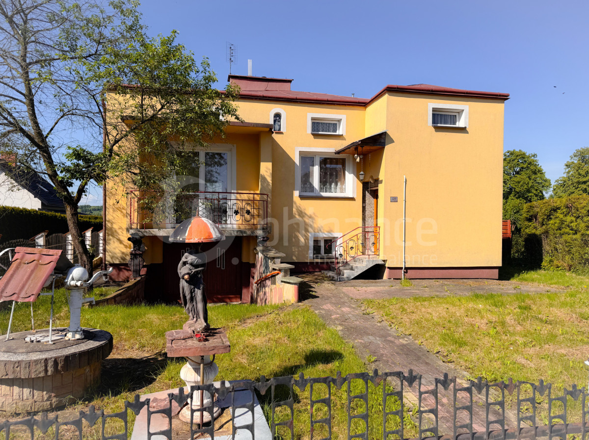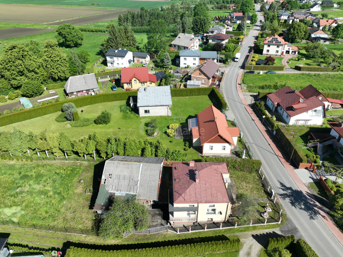 Dom składa się z 3 pokoi, kuchni, łazienki oraz korytarza. Dodatkową powierzchnię stanowi strych oraz suterena, która obejmuje 4 pomieszczenia i garaż. W jednym z pomieszczeń znajduje się klimatyczny piec kaflowy. Na posesji znajduje się także budynek gospodarczy, który można zaadaptować na warsztat, magazyn lub dodatkowy garaż.