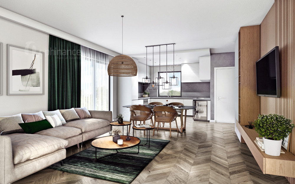 Wysoki standard wykończenia obejmujacy m.in. ogrzewanie podłogowe na całej powierzchni oraz okna 3-szybowe.