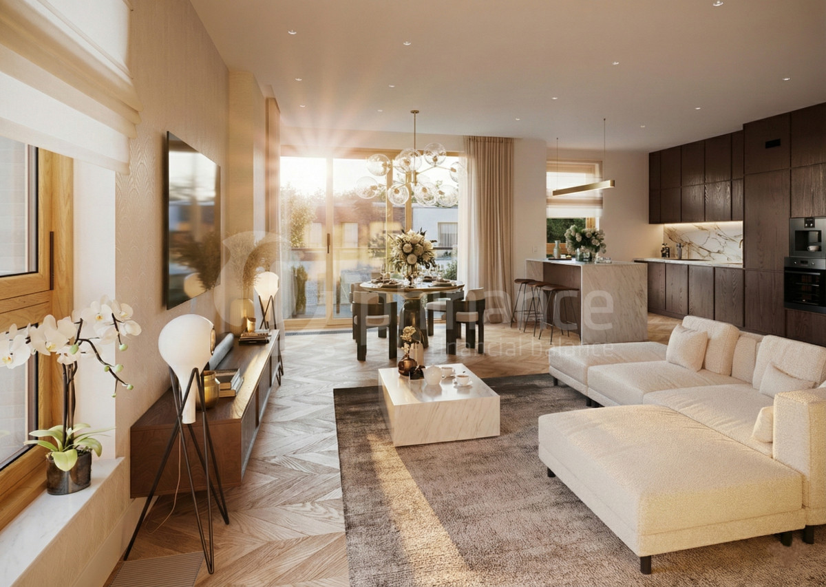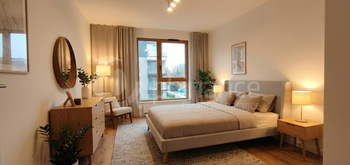 Prezentuję przemyślany, narożny apartament zaprojektowany z myślą o komforcie rodzinnym i wymagającym stylu życia. Lokal o funkcjonalnym, przemyślanym układzie oferuje dużą, otwartą strefę dzienną z aneksem kuchennym, która stanowi naturalne centrum domu - idealne miejsce do spotkań, pracy zdalnej i codziennego relaksu. Duże przeszklenia zapewniają doskonałe doświetlenie, a widok na zielone patio gwarantuje prywatność i ciszę.