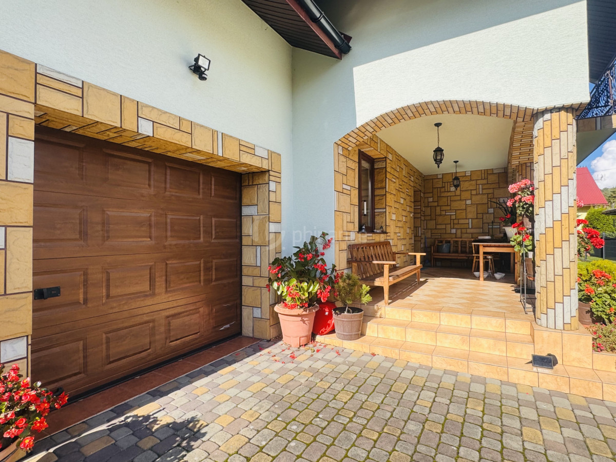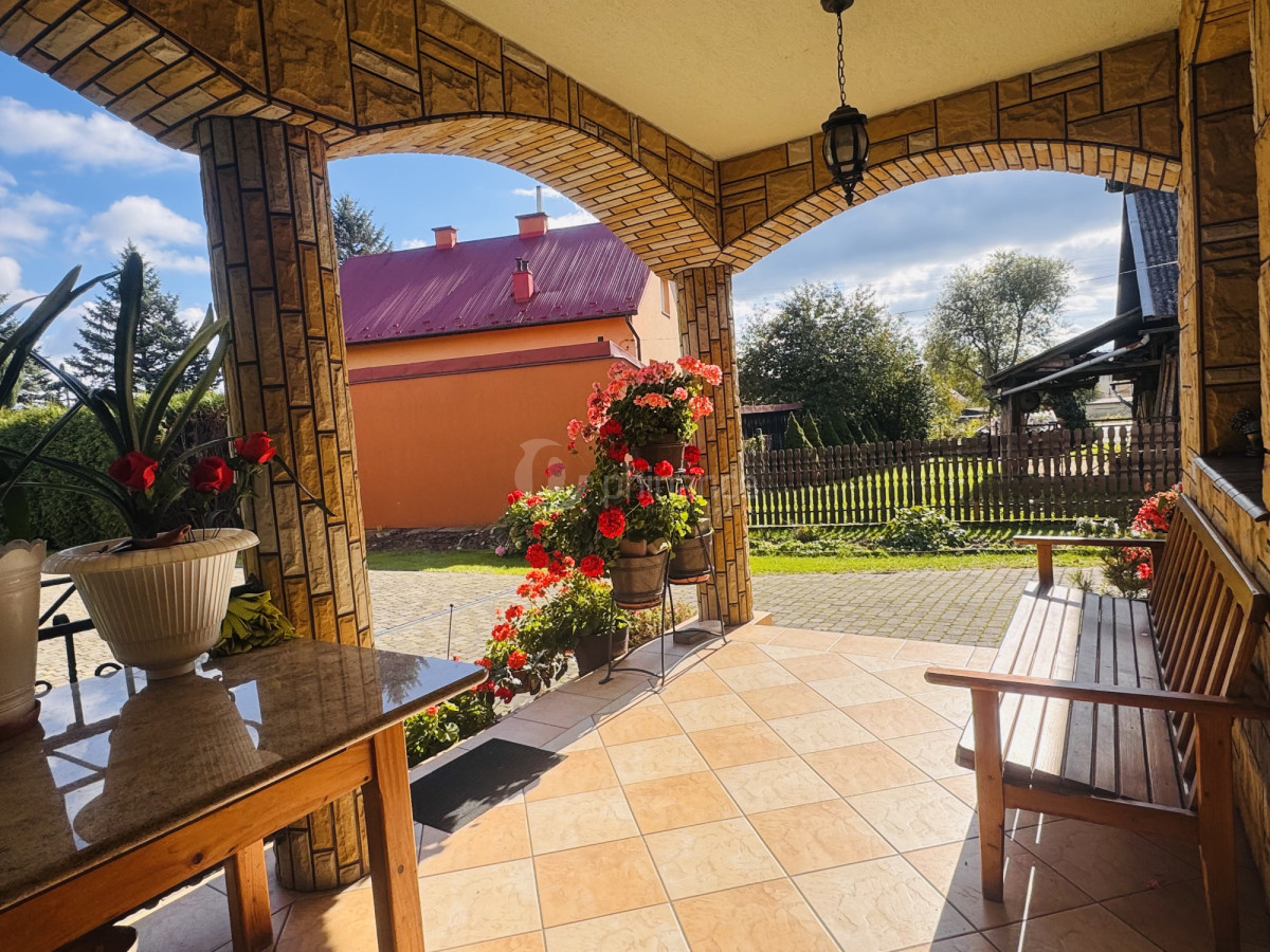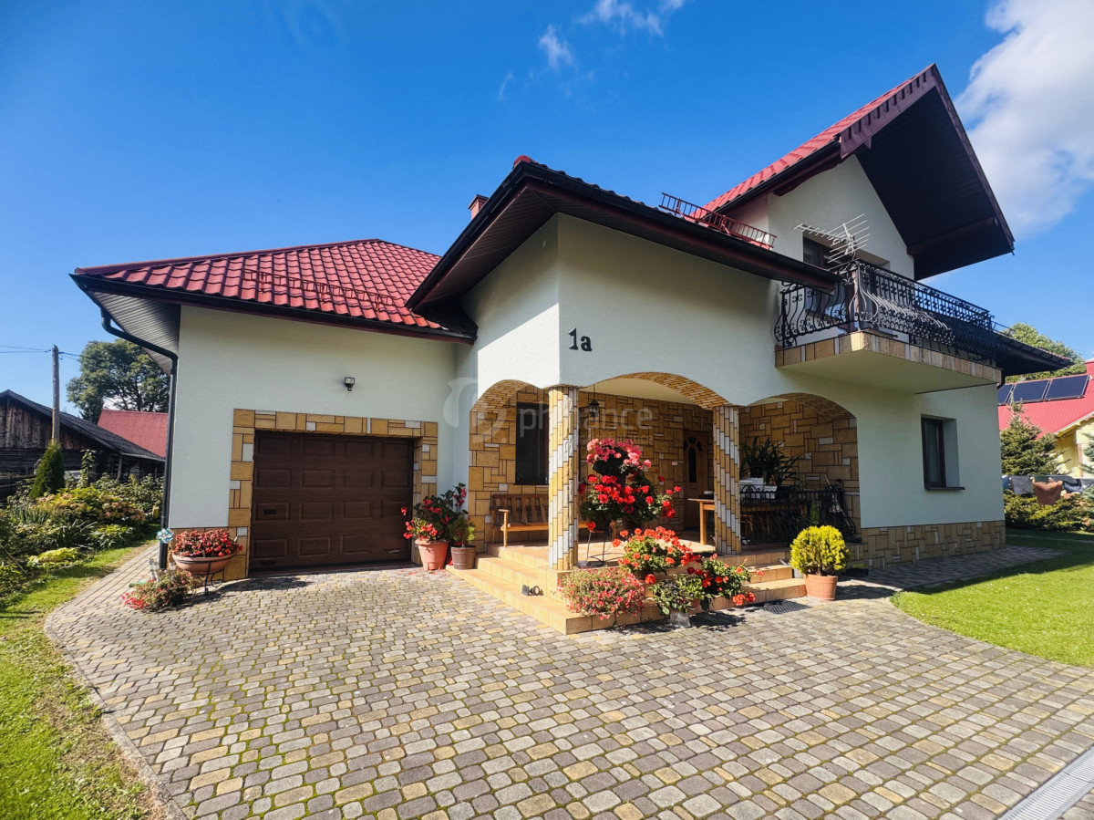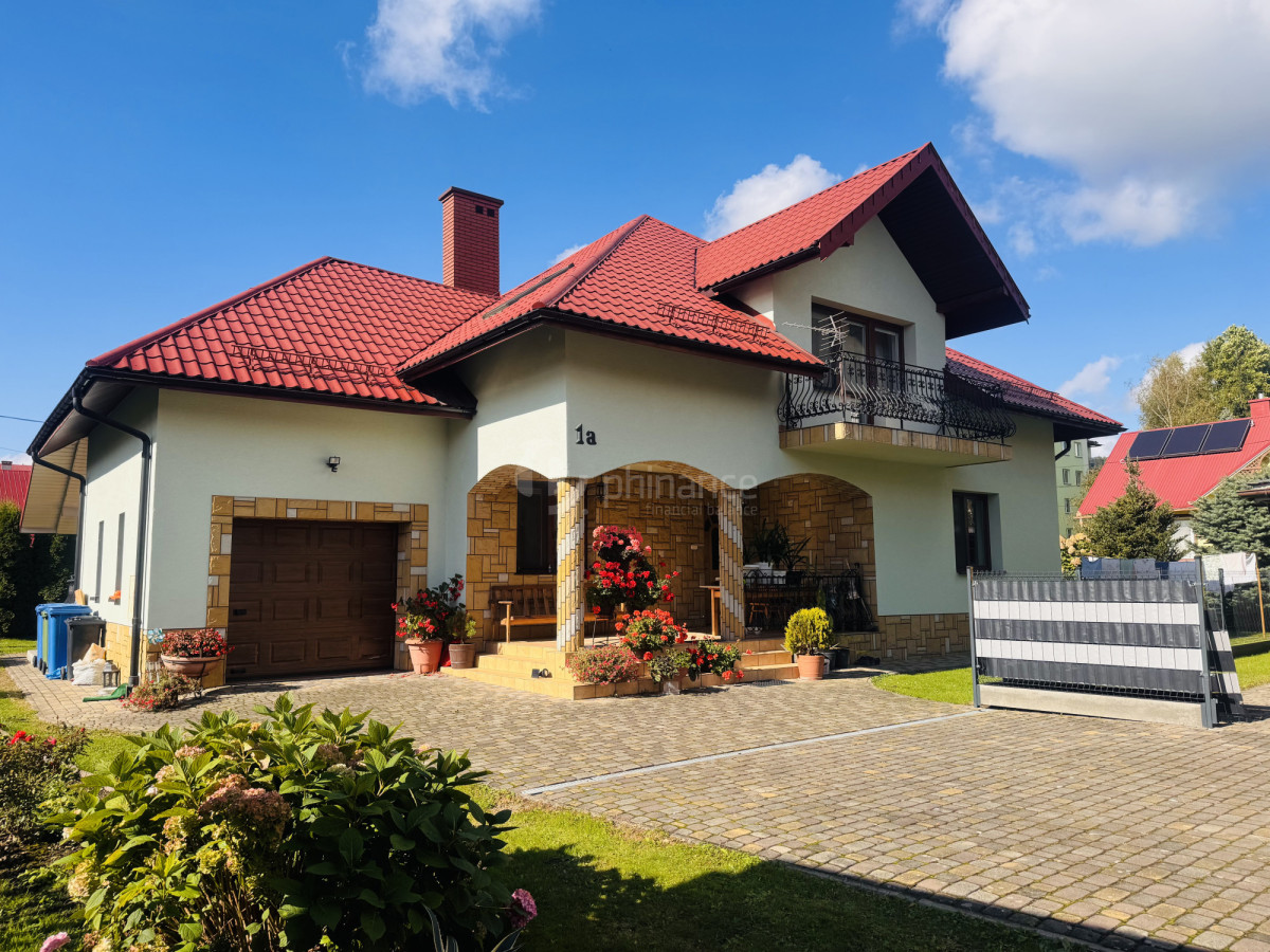 Budynek wybudowany w 2010 roku, ma dwie kondygnacje i został wykonany z pustaka ceramicznego. Całość ocieplono styropianem o grubości 20 cm, a elewacja wykończona jest tynkiem mineralnym o eleganckiej strukturze. Dach pokryto trwałą blachodachówką, a wokół domu ułożono kostkę brukową. Okna PCV nowej generacji zapewniają doskonałą izolację termiczną i akustyczną. Ogrzewanie gazowe realizowane jest przez wysokiej klasy piec Viessmann. Wjazd na posesję odbywa się przez automatyczną, kutą bramę bezpośrednio z drogi asfaltowej.