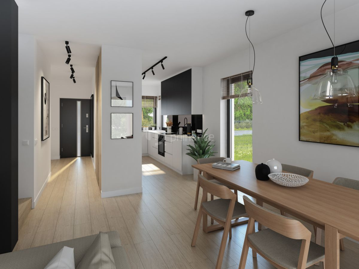 Na parterze znajduje się przestronny salon z kuchnią, toaleta, korytarz i pomieszczenie gospodarcze. Na piętrze, trzy ustawne pokoje oraz duża łazienka. Dodatkowym atutem jest użytkowe poddasze.