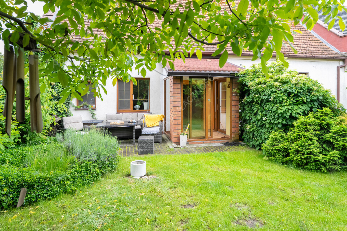 Ogród o powierzchni ok. 640 m2, z urokliwą starą ziemianką/piwniczką - dotąd wykorzystywaną jako skład węgla, ale po odświeżeniu aż prosi się o adaptację na winiarnię, saunę lub stylowe miejsce do przechowywania przetworów.