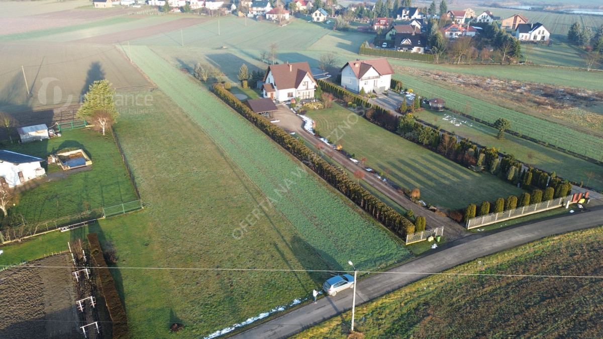Teren płaski, w kształcie prostokąta o wymiarach 28 x 100 m, z bezpośrednim dojazdem z drogi asfaltowej.