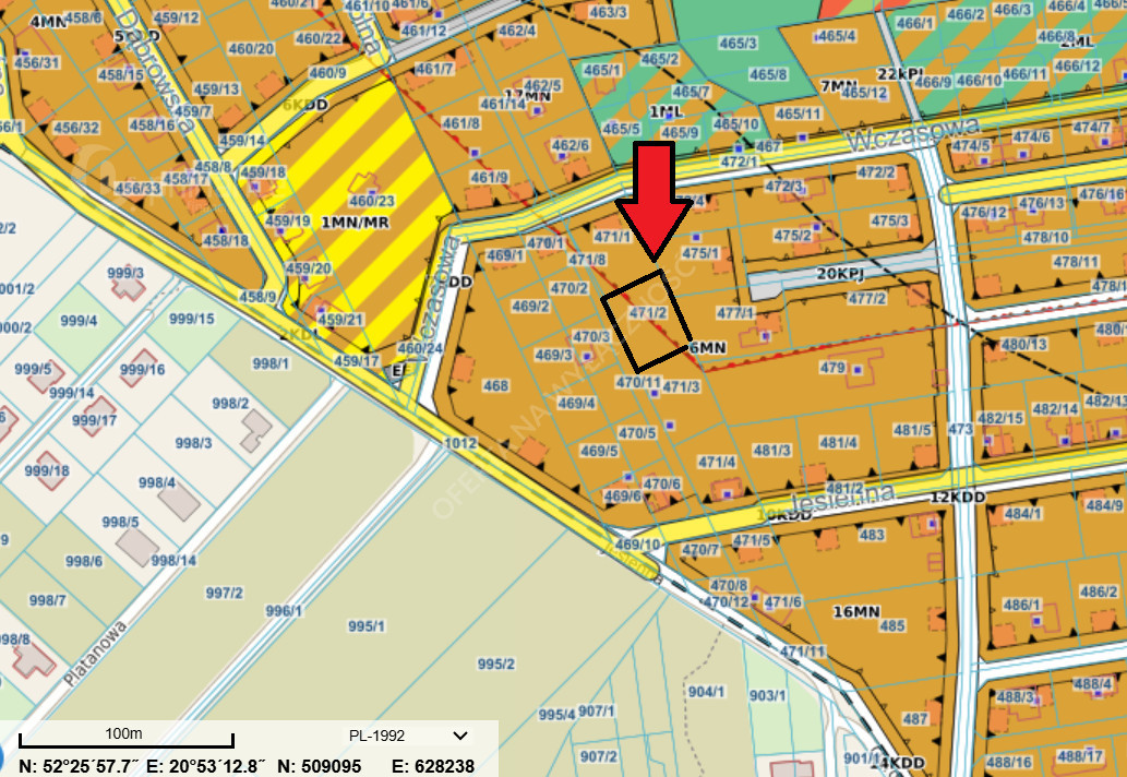 Wymiary 37x29m, MPZP - oznaczenie MN6 - zabudowa jednorodzinna wolnostojąca, dostęp do drogi, dojazd drogą gruntową.