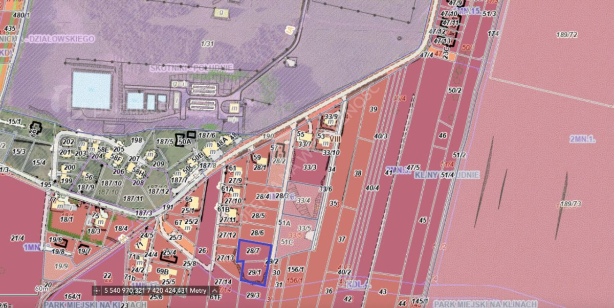 Nieruchomość objęta jest miejscowym planem zagospodarowania przestrzennego "Kliny Południe", który dopuszcza zabudowę jednorodzinną wolnostojącą, bliźniaczą, szeregową oraz dwulokalową.