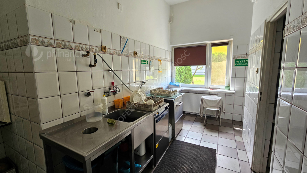 2 kuchnie, magazyn, kotłownia, pomieszczenia biurowe i socjalne, pralnia, WC damskie i męskie