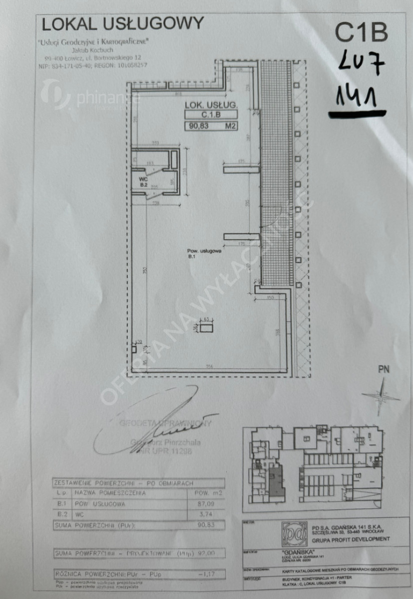 Cena brutto: 1.100.000 zł, w tym 23 % VAT (netto 9.840 zł/m2).