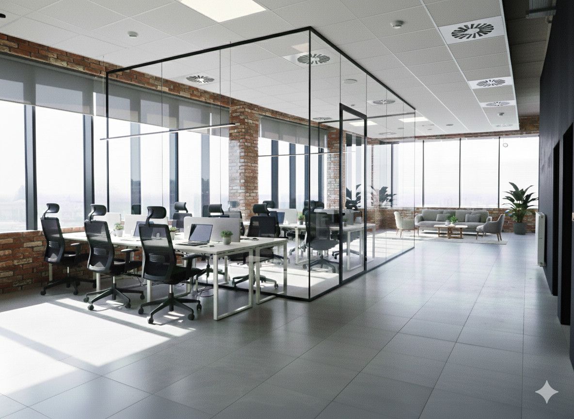 - open space lub możliwość tworzenia wydzielonych gabinetów