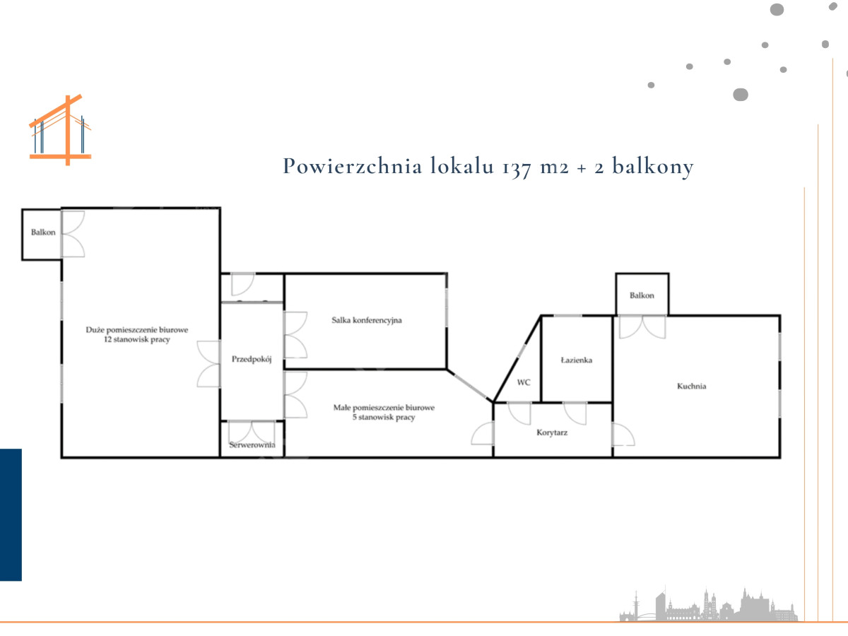 - biuro architektoniczne, marketingowe lub agencja kreatywna, które docenią unikalny charakter wnętrz i dogodny układ pomieszczeń,