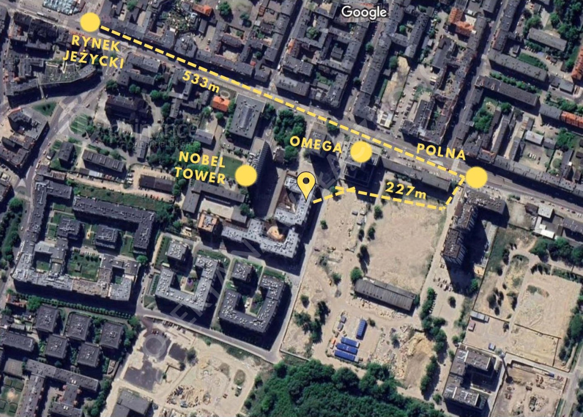 Zaledwie 2 minuty pieszo dzielą lokal od przystanku tramwajowego Polna oraz przejścia w kierunku ul. Dąbrowskiego, co zapewnia duży ruch pieszych i doskonałą ekspozycję.