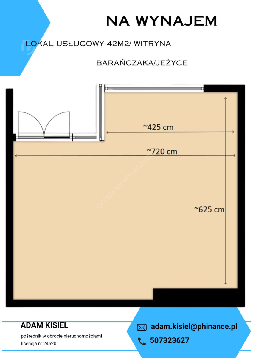 Lokal położony jest w dynamicznie rozwijającej się części Jeżyc, przy ul. Barańczaka, z wejściem i witrynami od strony ulicy. W najbliższym sąsiedztwie znajdują się m.in. sklep spożywczy, piekarnia oraz przychodnia lekarska.