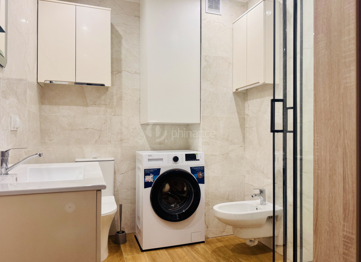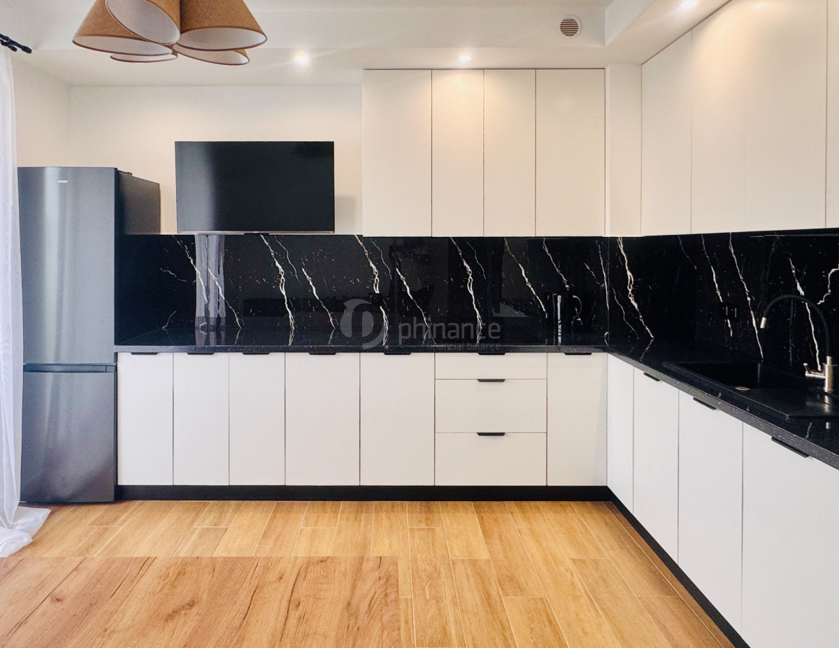 Mieszkanie jest zupełnie nowe, nigdy niezamieszkałe, wykończone w wysokim standardzie z dbałością o detale. Jest częściowo umeblowane i urządzone w nowoczesnym, gustownym stylu.