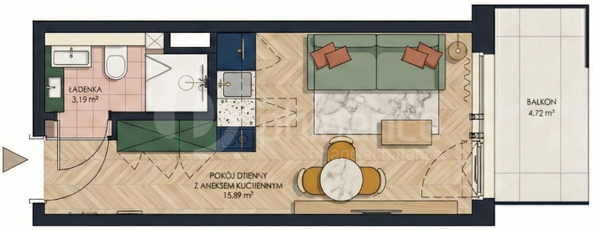 Kawalerka • 19,41 m² • balkon 4,72 m² • 2 piętro • stan: WYKOŃCZONA ŁAZIENKA, reszta stan deweloperski.