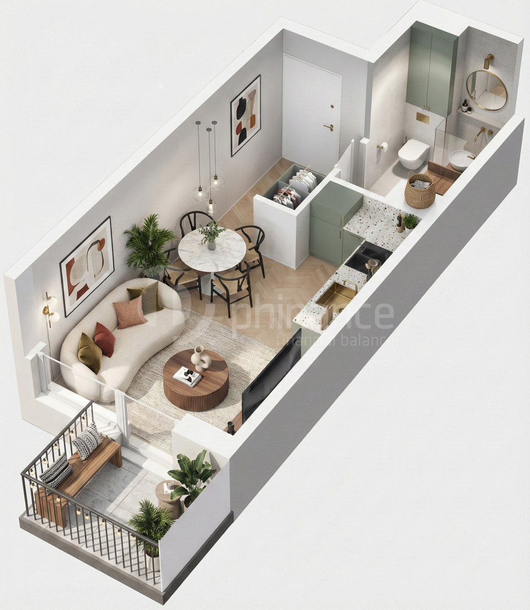 Metraż: 25,68 m² (pow. użytkowa)