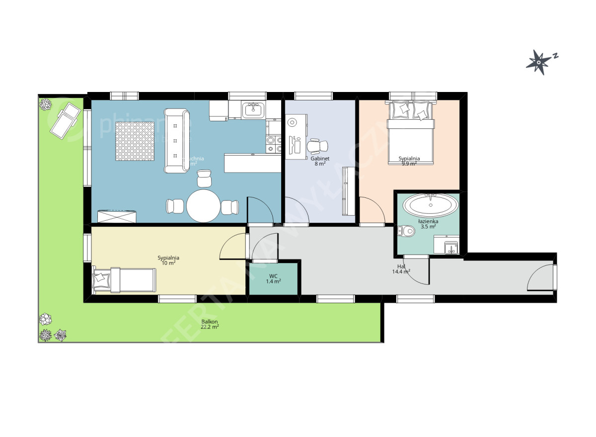 - BALKON: Balkon narożny o powierzchni 22,29 m²