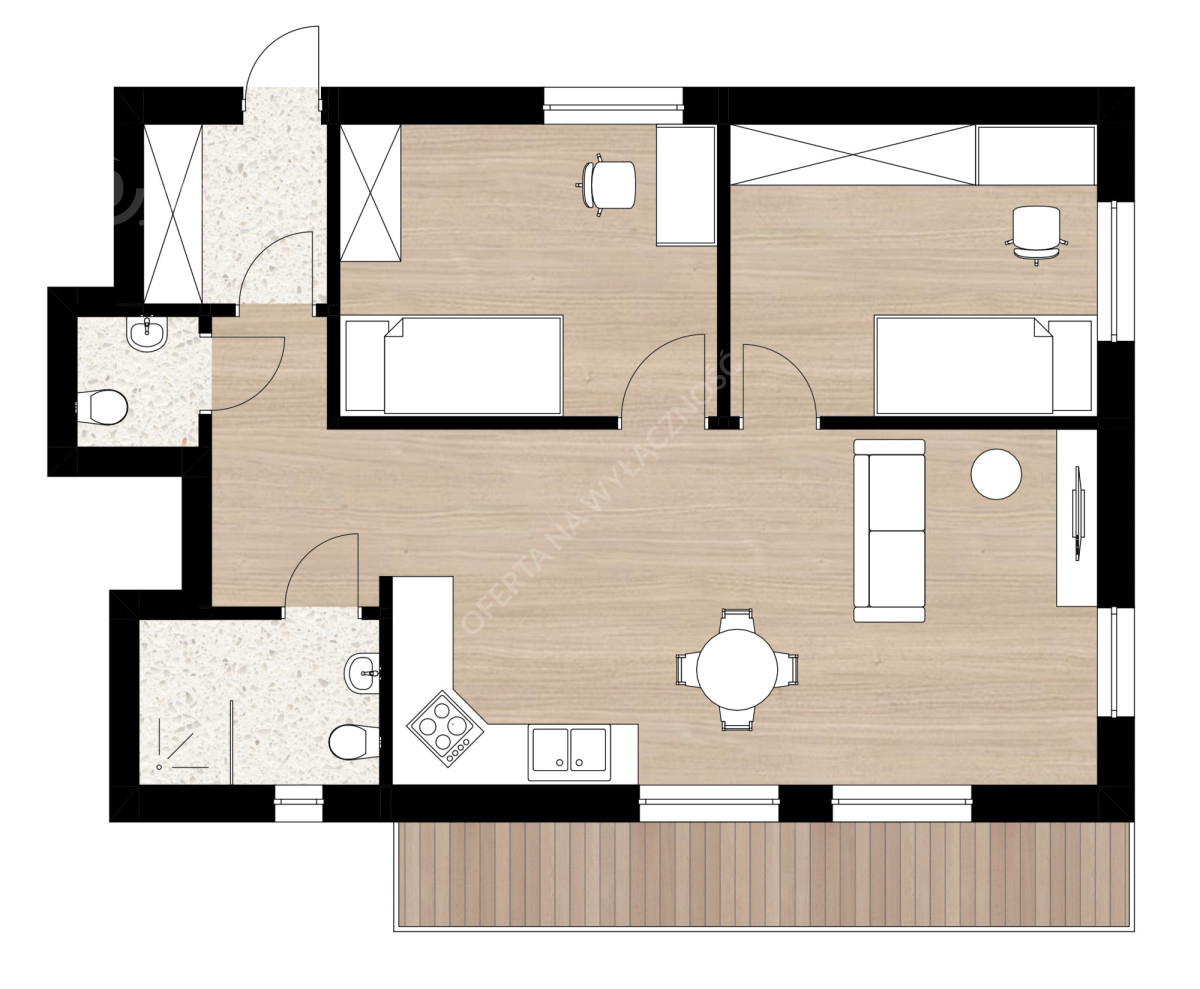 - powierzchnia mieszkania: ok. 60 m²