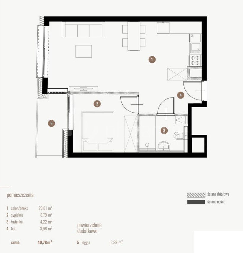 Centrum Łodzi: Nowoczesne, funkcjonalne 2 pokojowe mieszkanie o powierzchni 40,78 m², zaprojektowane z myślą o komforcie i ergonomii przestrzeni.
