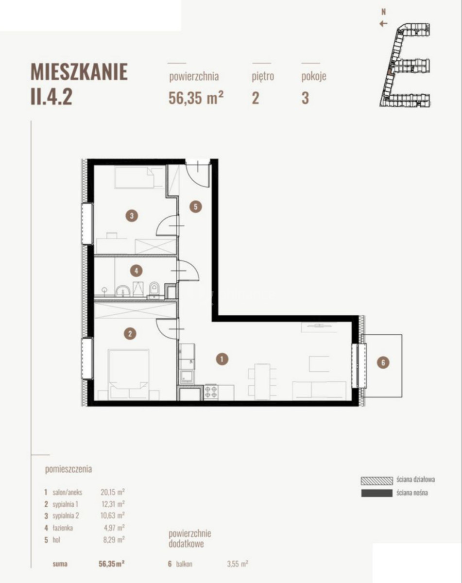 - Balkon: 3,55 m², doskonały na poranną kawę lub wieczorny odpoczynek..