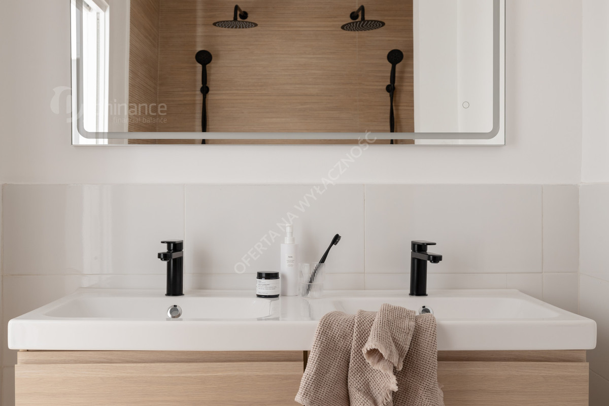 - elegancka łazienka w układzie „Jack & Jill” z podwójną umywalką i dwoma natryskami.