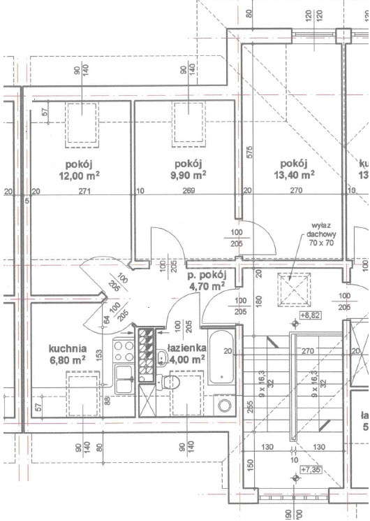 trzech pokoi (jeden z tradycyjnym oknem, dwa z oknami dachowymi)
