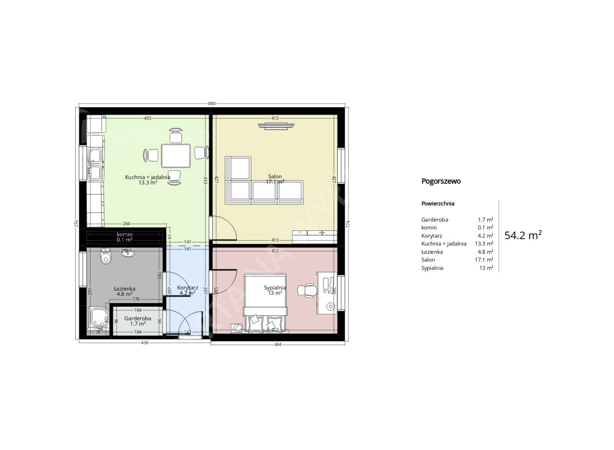 - Funkcjonalna przestrzeń: mieszkanie składa się z jasnej kuchni połączonej z jadalnią (13,3 m²) oraz dwóch przestronnych pokoi (17,1 m² i 13 m²) w praktycznym, kwadratowym kształcie, co zapewnia nieograniczone możliwości aranżacji.