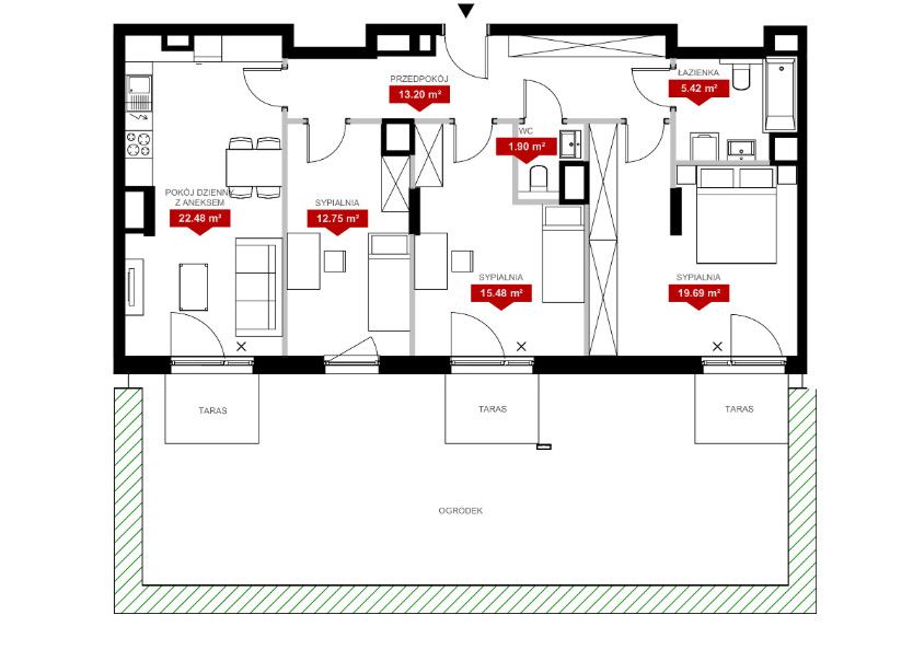 • Powierzchnia: 91,2 m²