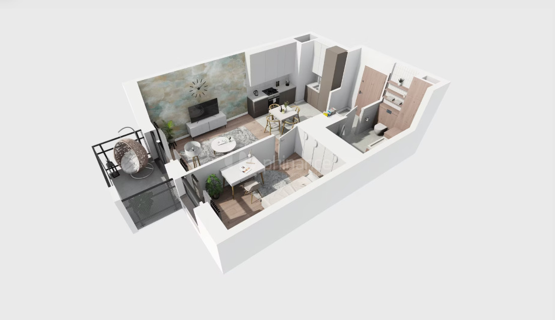 Rzut oraz wizualizacje w ofercie przedstawiają przykładowy sposób aranżacji wnętrza. Powyższa oferta ma charakter informacyjny i nie stanowi oferty handlowej w rozumieniu art. 66 §1 Kodeksu Cywilnego.