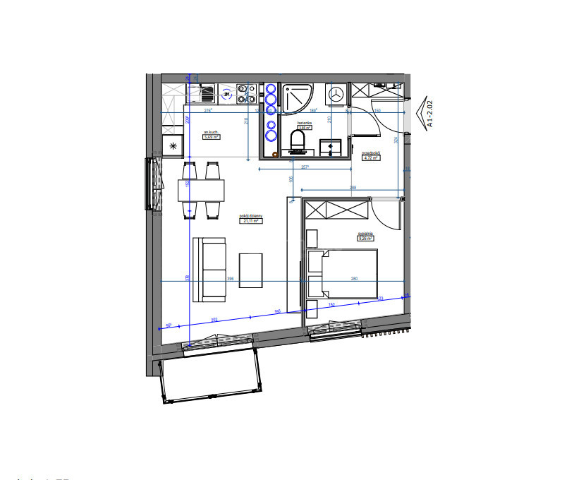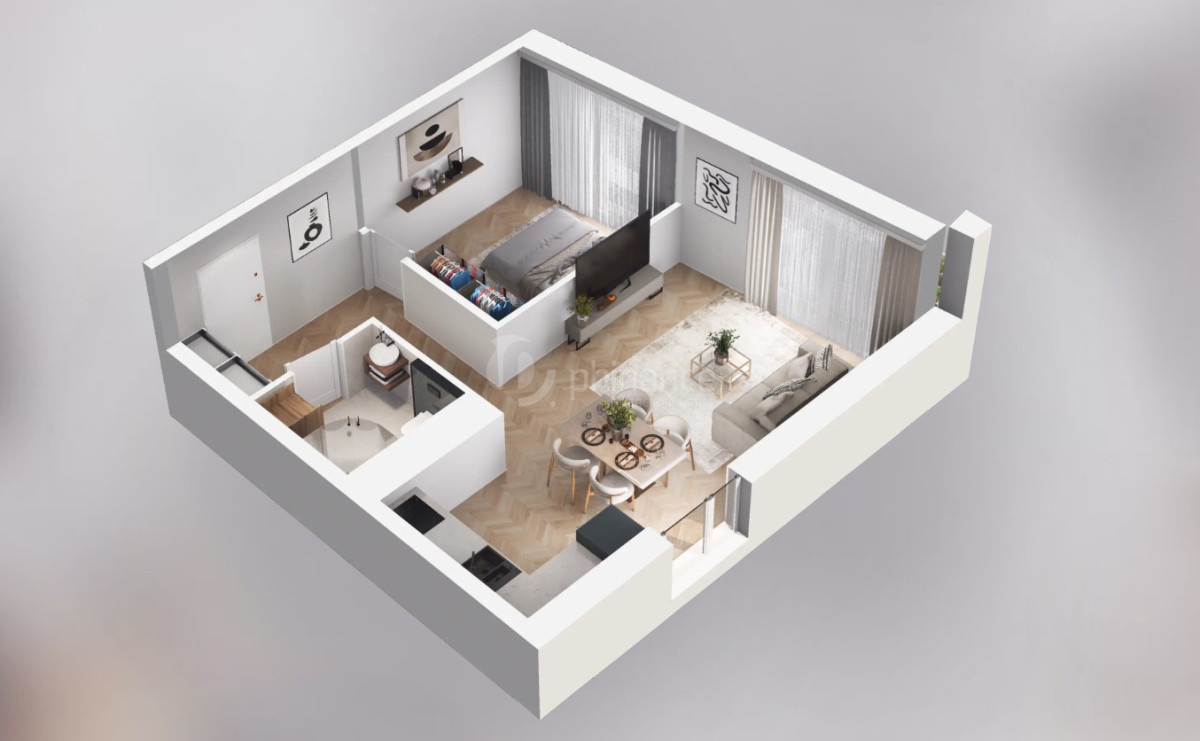 Rzut oraz wizualizacje w ofercie przedstawiają przykładowy sposób aranżacji wnętrza. Powyższa oferta ma charakter informacyjny i nie stanowi oferty handlowej w rozumieniu art. 66 §1 Kodeksu Cywilnego.