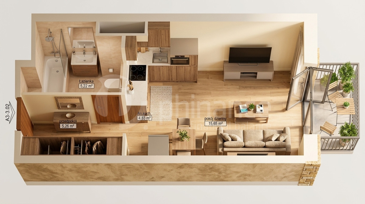 Rzut oraz wizualizacje w ofercie przedstawiają przykładowy sposób aranżacji wnętrza. Powyższa oferta ma charakter informacyjny i nie stanowi oferty handlowej w rozumieniu art. 66 §1 Kodeksu Cywilnego.