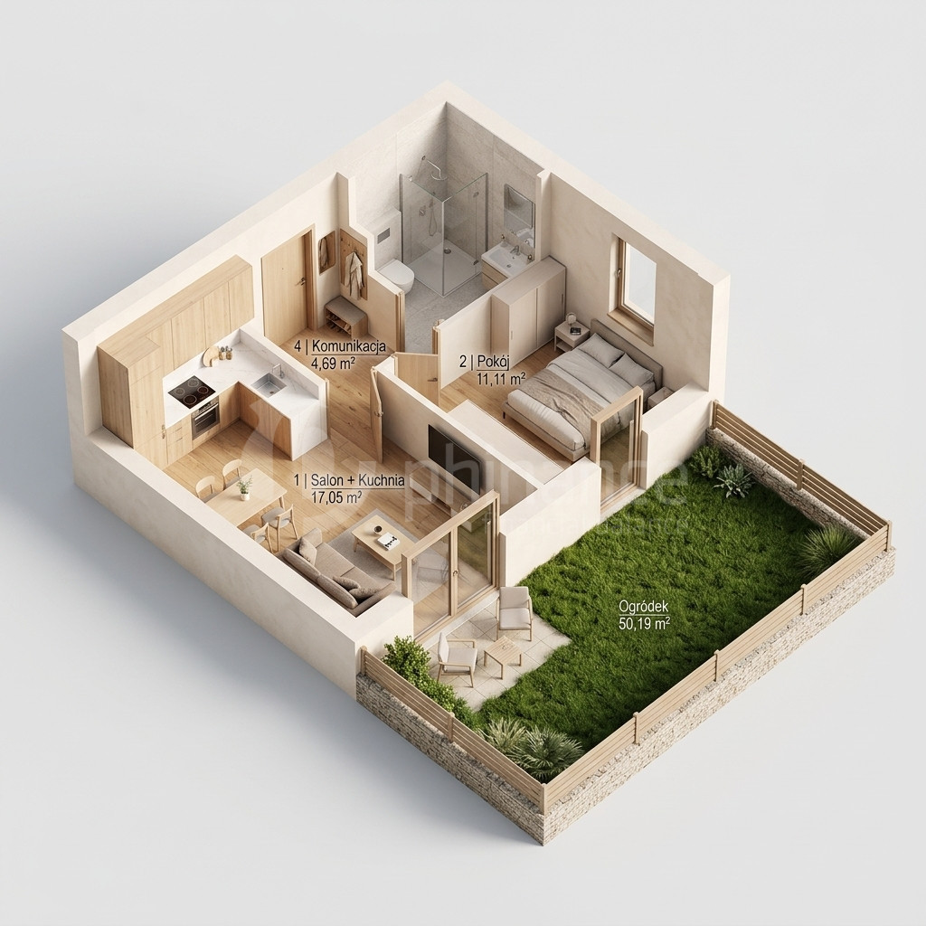 Oferuję na sprzedaż mieszkanie o powierzchni 36 m², położone na parterze nowoczesnego, 5-piętrowego budynku z windą. To 2-pokojowe mieszkanie z własnym ogródkiem o powierzchni aż 50 m², z widokiem na planowany park - przestrzeń, której nie znajdziesz w standardowych ofertach.