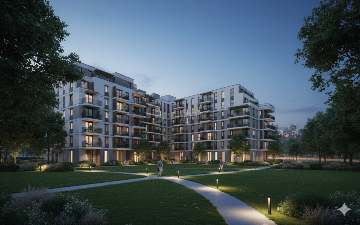 - Nowoczesna architektura i estetycznie zaprojektowane przestrzenie wspólne