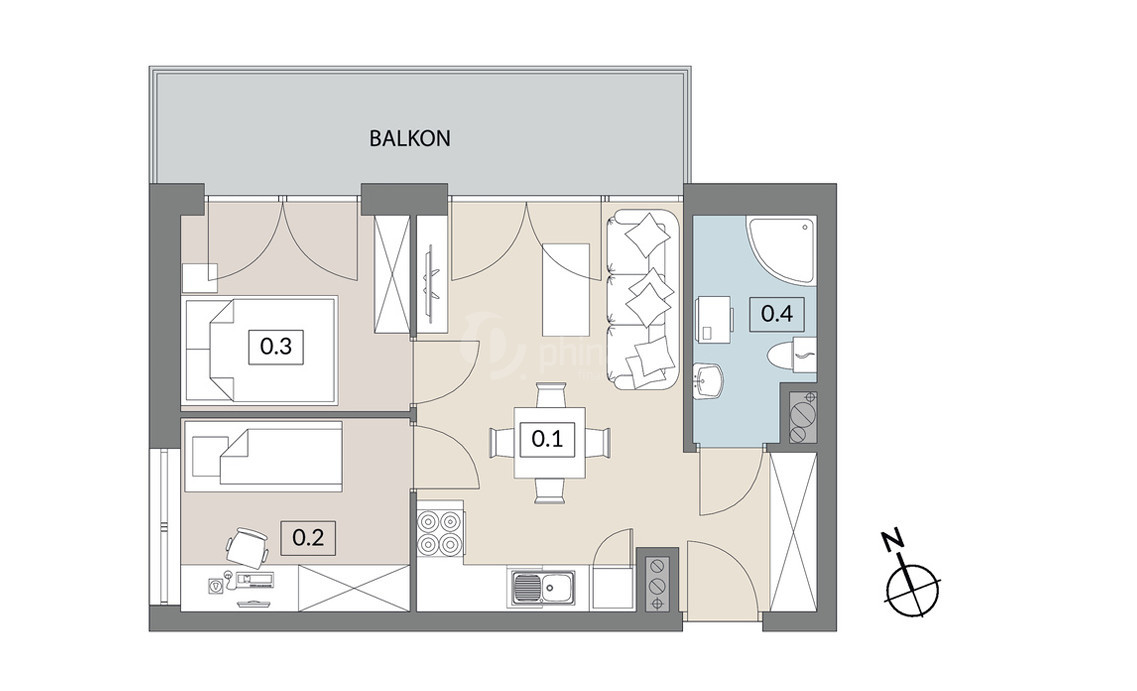 Rzut oraz wizualizacje w ofercie przedstawiają przykładowy sposób aranżacji wnętrza. Powyższa oferta ma charakter informacyjny i nie stanowi oferty handlowej w rozumieniu art. 66 §1 Kodeksu Cywilnego.