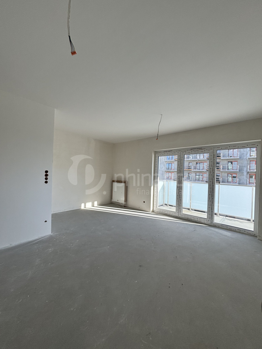 - Salon z aneksem kuchennym - jasna, otwarta przestrzeń dzienna, idealna do aranżacji w nowoczesnym stylu