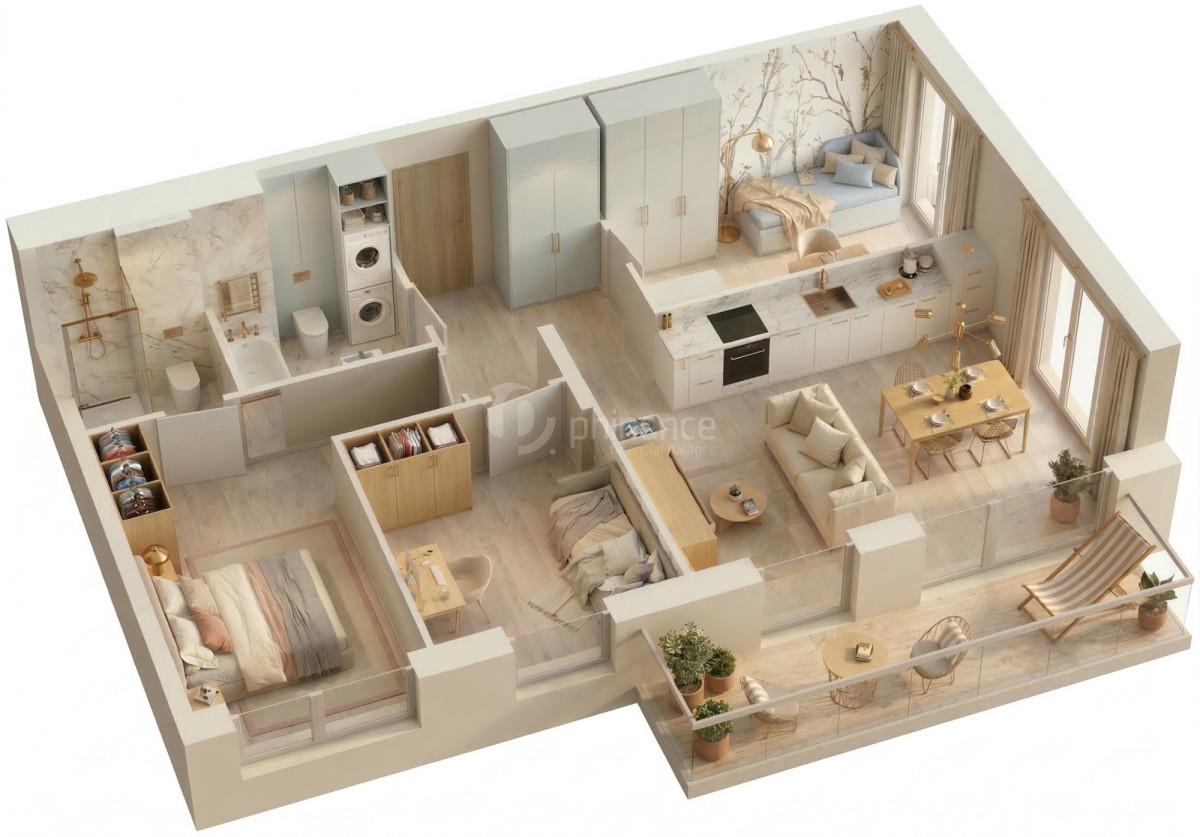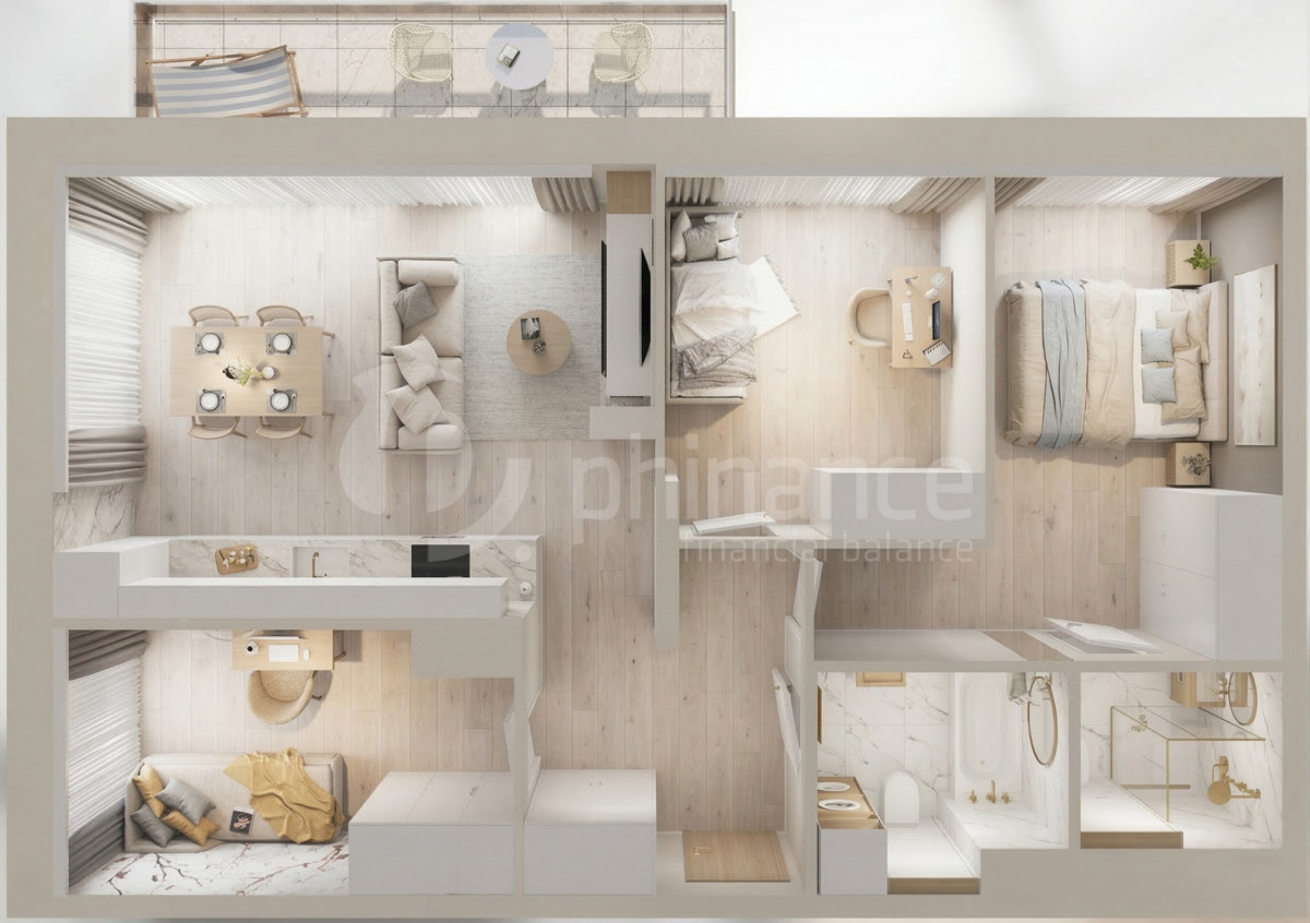 Wizualizacje mają charakter poglądowy i nie stanowią elementu oferty w rozumieniu art. 66 Kodeksu cywilnego. Mieszkanie sprzedawane jest w stanie deweloperskim.
