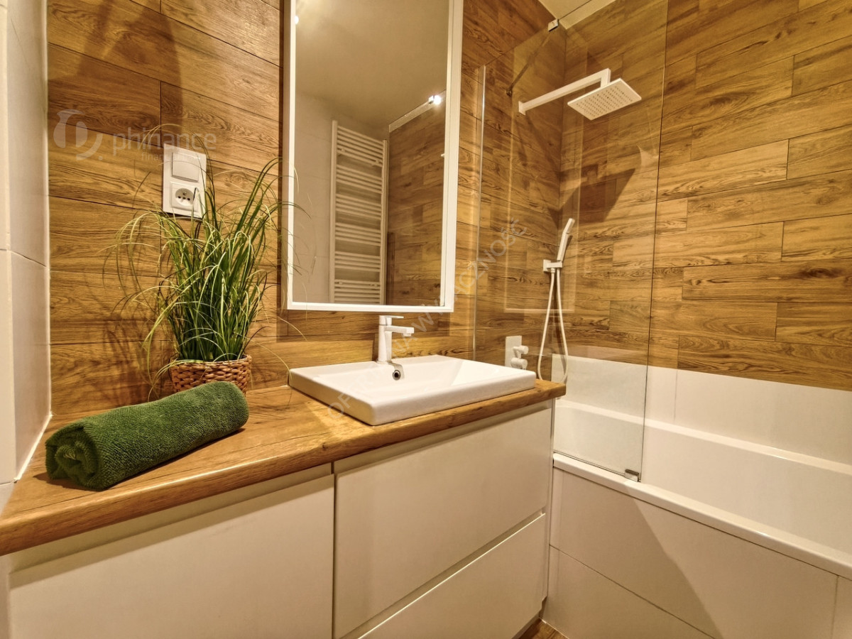 - w łazience płytki drewnopodobne