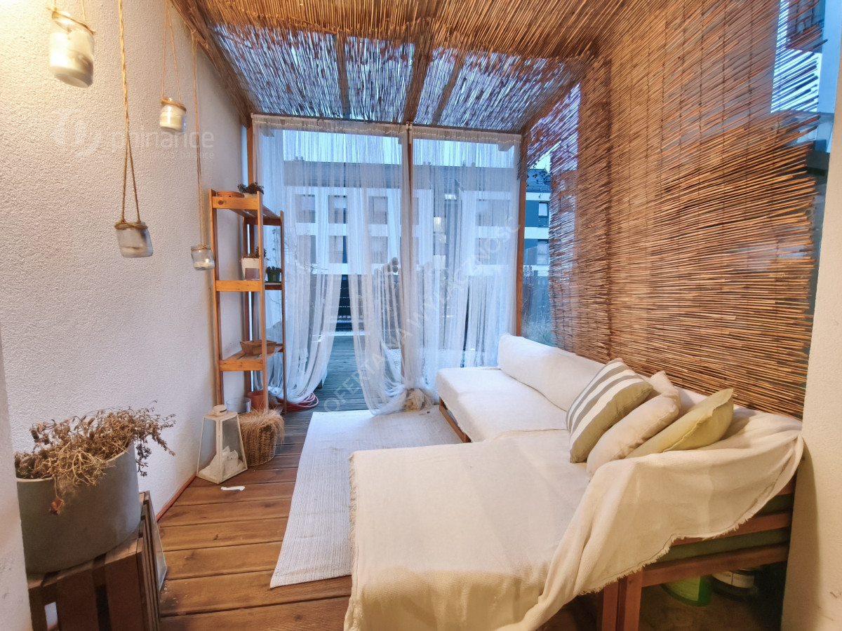 Z salonu wyjście na zadaszony i zagospodarowany taras oraz ogródek o łącznej powierzchni blisko 30 m² - idealna przestrzeń na poranną kawę, relaks lub spotkania z bliskimi.