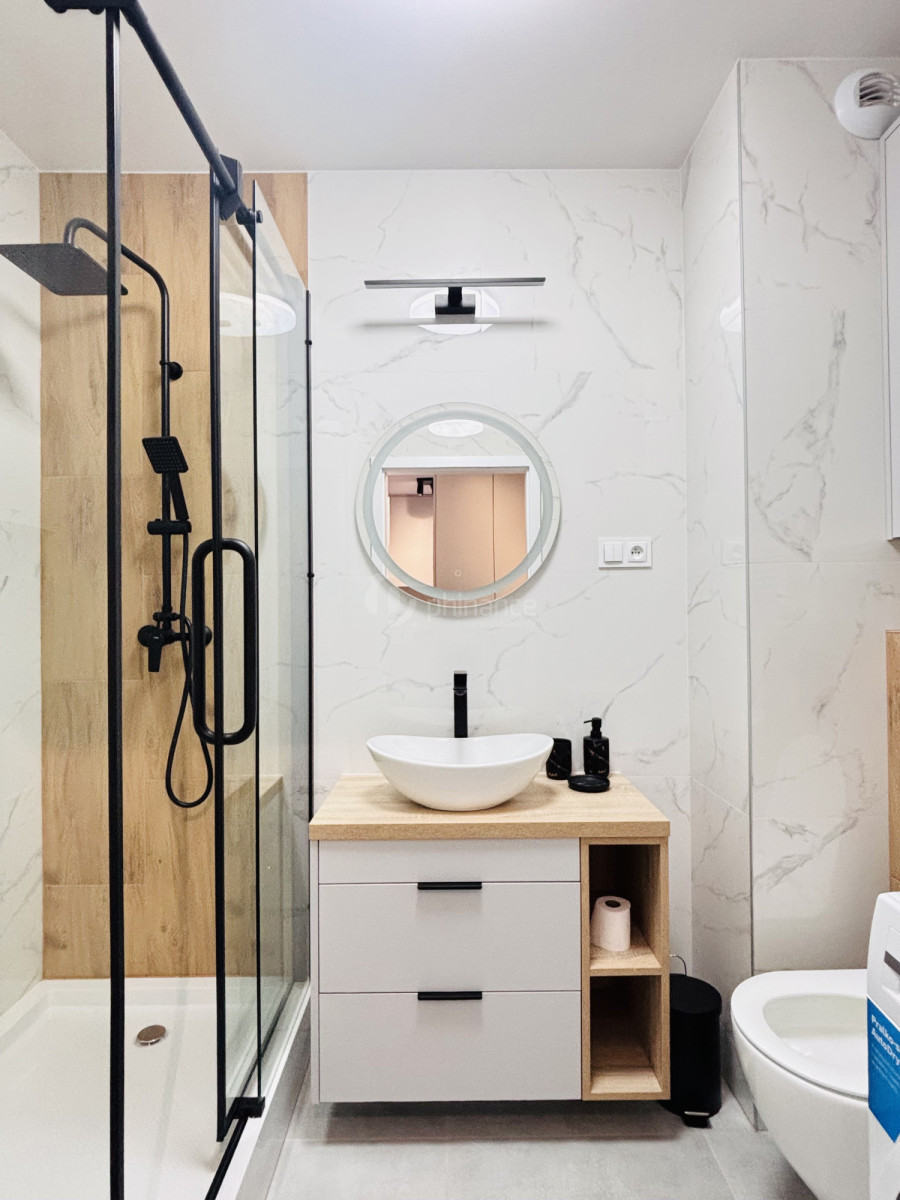 Mieszkanie jest świeżo wykończone - pierwszy najemca wprowadza się do zupełnie nowego wnętrza.