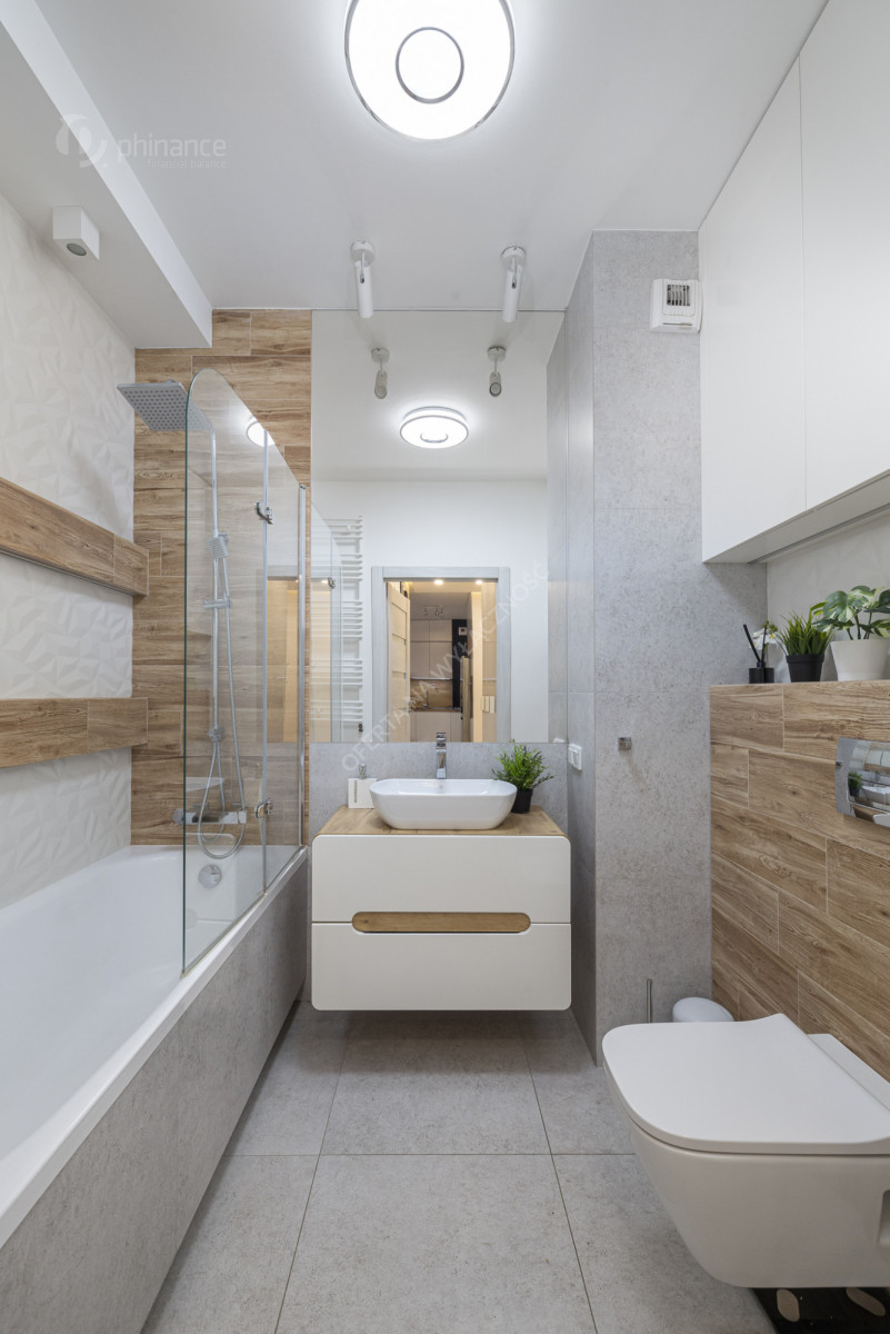 - łazienka (3,9m2) wyposażona w wannę z prysznicem,