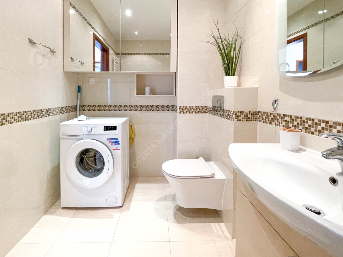 - łazienka 5,56m2 wyposażona w wannę, umywalkę, pralkę, WC,