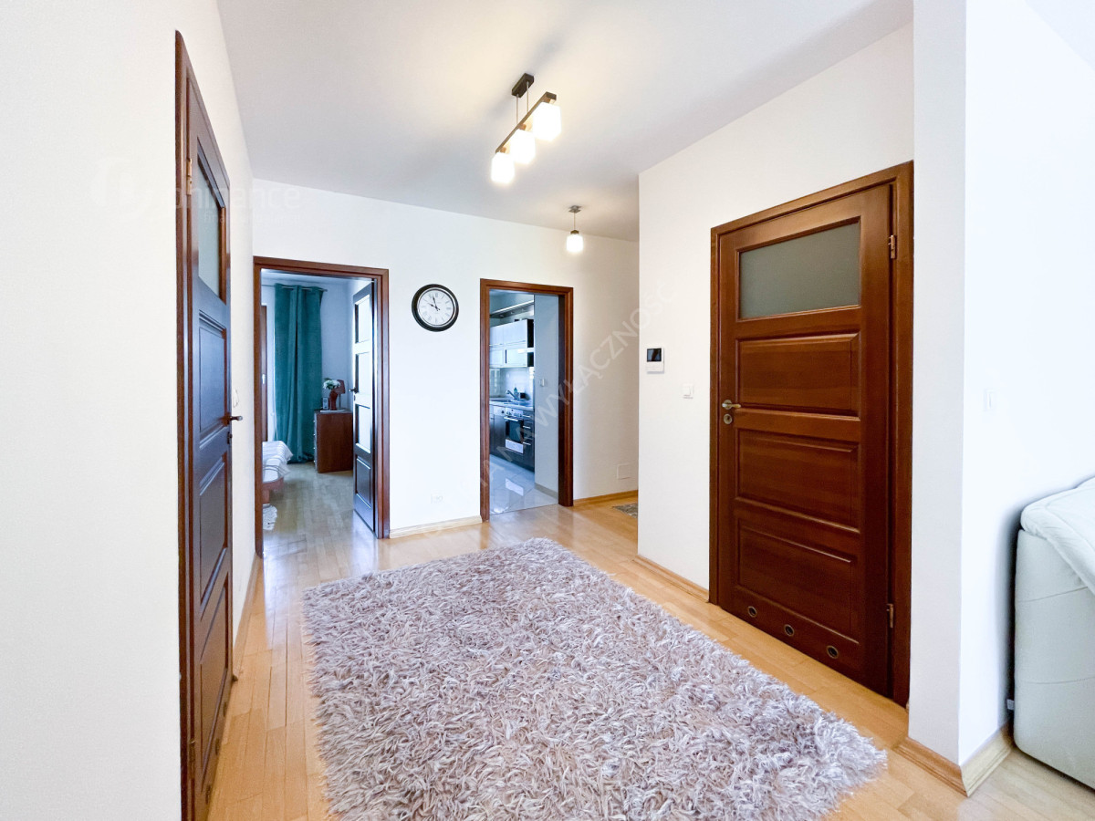 Dogodnie skomunikowana okolica, najbliższy przystanek autobusowy 60m, dojazd do metra Wilanowska w ok. 10min, szybki dojazd do trasy S2 jak i lotniska.