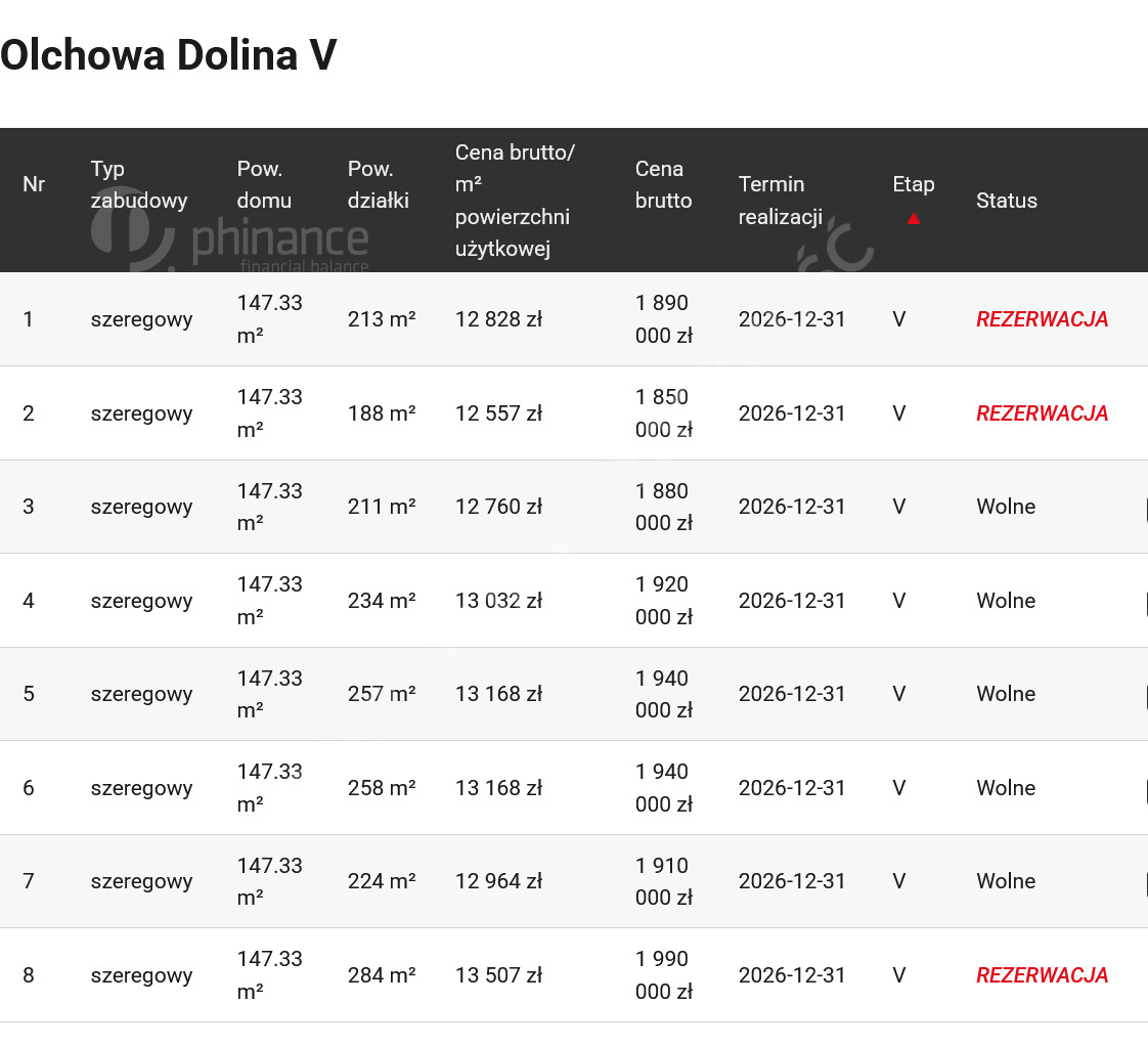 5 szeregowy 147.33 m² /257 m² / 1 940 000 zł / Wolne